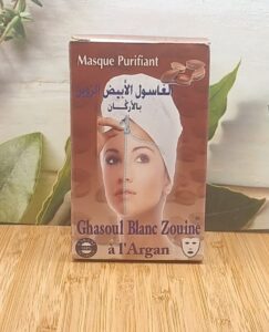 Arganolie Het is een natuurlijke olie die wordt gewonnen uit de amandelbomen in het zuiden van marokko. Deze olie trok onlangs de aandacht van wetenschappers vanwege het hoge gehalte aan essentiële vetzuren en vitamine E. Voordelen: vitaliteit en beschermt tegen rimpels, donkere kringen en sproeten Beschermt de huid tegen zonneschade en effecten Zuiveren en voeden van de huid whitening en verbetering van de huid Ideaal voor alle huidtypes Twee tot drie keer binnen een week met rozenwater gebruiken. Gebruiksaanwijzing inbegrepen binnenin.Het Witte ghasoul zouine is verrijkt met argan. Argan is rijk aan vitamines en onverzadigde vetzuren en voedt en regenereert de huid. De antioxidanten in Argan beschermen de huid tegen vrije radicalen en veroudering. Argan in het masker kalmeert en geeft je tegelijkertijd een verfrist gevoel.